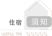 | ▪ | 入住時請結清尾款及押金,並請記得出示您的證件以便我們登記。 |